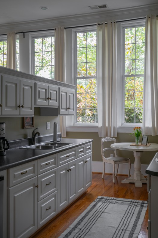 The Litchfield features a luxurious and oh-so-comfortable King bed, cozy sitting area, and beautiful natural light. This suite offers our largest kitchenette, with lots of counter space and cabinetry, as well as a table for work or eating. The private bathroom has a large walk-in shower and fluffy towels are provided.